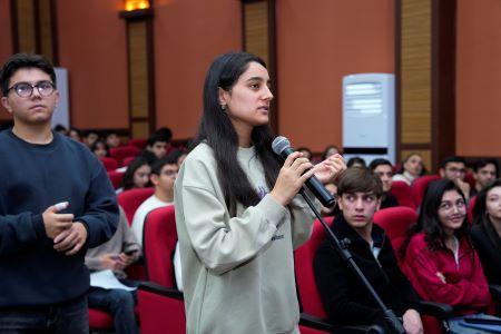 “Açıq mikrofon” layihəsi çərçivəsində universitetin rektoru Elbrus İsayev növbəti dəfə tələbələrlə bir araya gəlib.