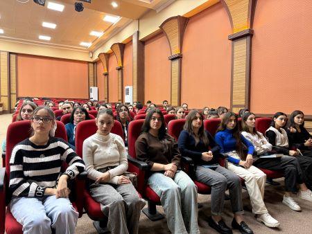 Tədbirdə həmçinin imtahan prosesinin təşkili, qiymətləndirmə meyarları və tələbələrin hüquqları ilə bağlı geniş məlumat təqdim olunub. Görüş interaktiv şəkildə davam edib, tələbələrin sualları cavablandırılıb və motivasiyaedici slayd nümayiş olunub.