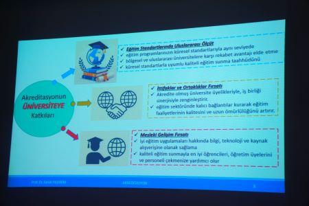 Professor Faruk Yıldırım daxili keyfiyyət təminatı, strateji planlaşdırma, davamlı təkmilləşdirmə və təsdiqyönlü idarəetmənin akademik bölmələrin beynəlxalq vizyonunun formalaşmasında əhəmiyyətini xüsusi vurğulayıb. Akkreditasiyanın yalnız qiymətləndirmə deyil, həm də institusional inkişaf və akademik mədəniyyətin formalaşmasına xidmət edən davamlı proses olduğu bildirilib.